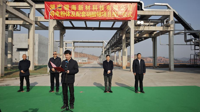 1月21日上午,銀海公司導(dǎo)電粉體及配套硝酸銀項(xiàng)目一期舉行了投產(chǎn)儀式。集團(tuán)黨委副書記、副董事長(zhǎng)、總經(jīng)理董巍出席并致辭,黨委委員、副總經(jīng)理蔣彪,永興縣委、縣政府、縣政協(xié)部分領(lǐng)導(dǎo)以及園區(qū)領(lǐng)導(dǎo)參加投產(chǎn)儀式。