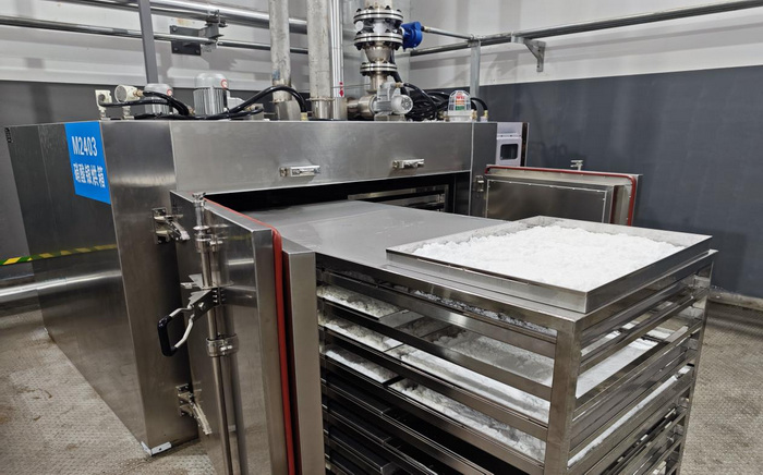 此次共投入810公斤銀板,經(jīng)過(guò)溶銀、除雜、中和、結(jié)晶、烘干等一系列流程后,一盤盤雪白的、亮晶晶的成品展現(xiàn)在大家眼前。