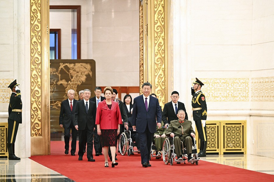 9月29日,中華人民共和國(guó)國(guó)家勛章和國(guó)家榮譽(yù)稱(chēng)號(hào)頒授儀式在北京人民大會(huì)堂金色大廳隆重舉行。中共中央總書(shū)記、國(guó)家主席、中央軍委主席習(xí)近平向“友誼勛章”獲得者迪爾瑪·羅塞芙頒授勛章。新華社記者鞠鵬攝