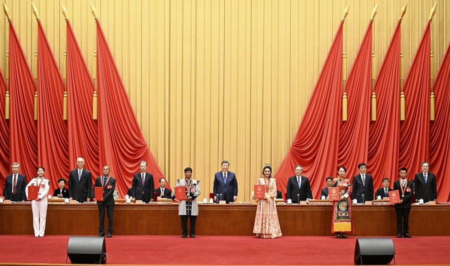 9月27日,全國民族團結進步表彰大會在北京舉行。這是習近平等為受表彰的模范個人和模范集體代表頒獎。新華社記者李學仁攝