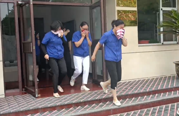 應(yīng)急逃生演練模擬辦公樓配電箱過載引發(fā)火災(zāi),警報響起,伴有大量濃煙,組織所有人員進行逃生疏散。采用煙霧生成器,通過制造大量煙霧模擬實際著火情況,讓辦公樓的員工在實戰(zhàn)中掌握逃生技能。辦公樓所有員工按照路線有序進行疏散,靠右側(cè)低頭捂鼻快走,沒有擁擠和奔跑,用時1分22秒完成安全轉(zhuǎn)移,圓滿達成此次應(yīng)急逃生演練的目的。